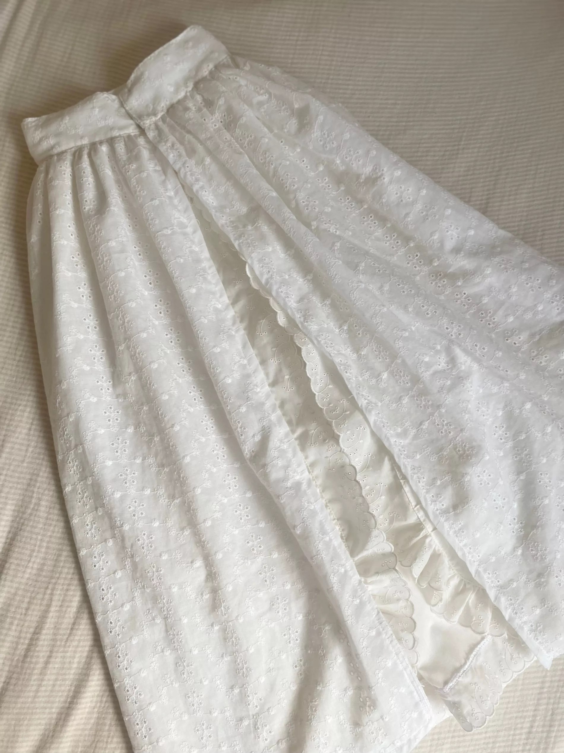 Faldón batista bordada, interior faldón en batista organiza con tira bordada, se personaliza con el nombre del bebe si se quiere en el faldón interior.se puede colocar la abertura por detrás o bien por delante.